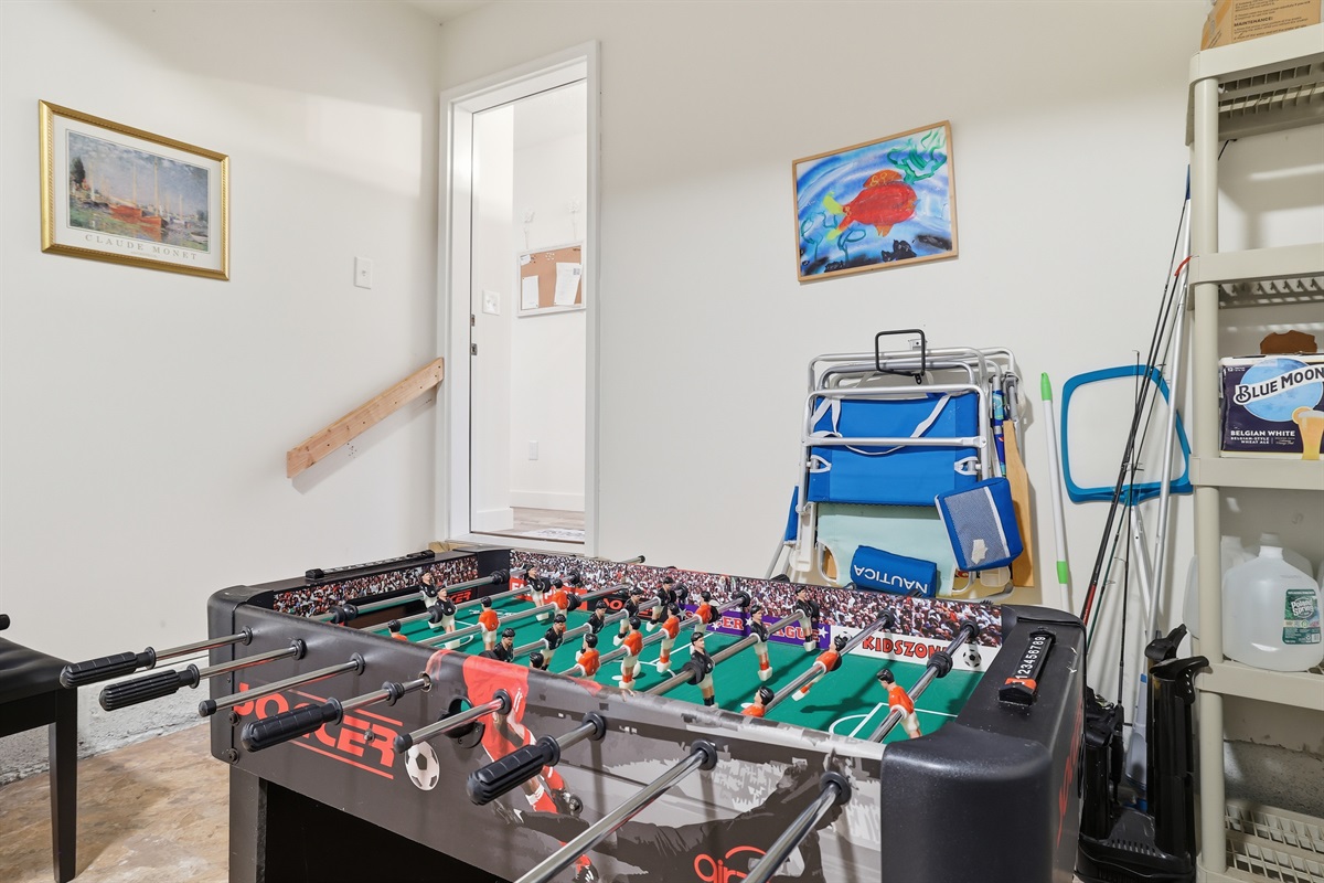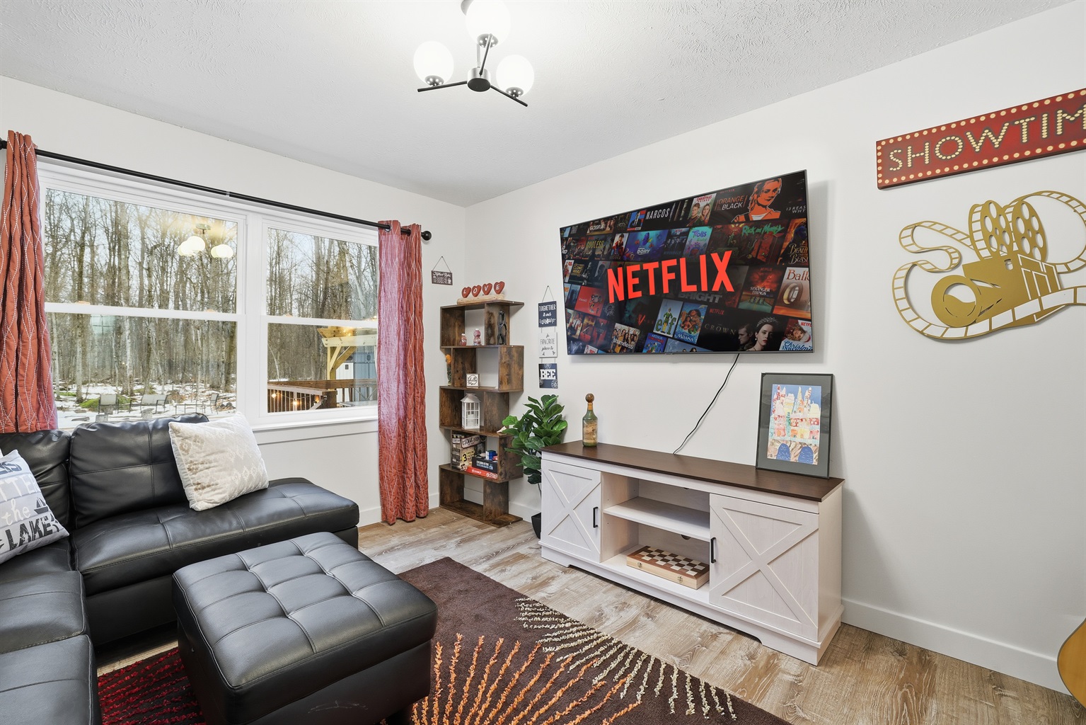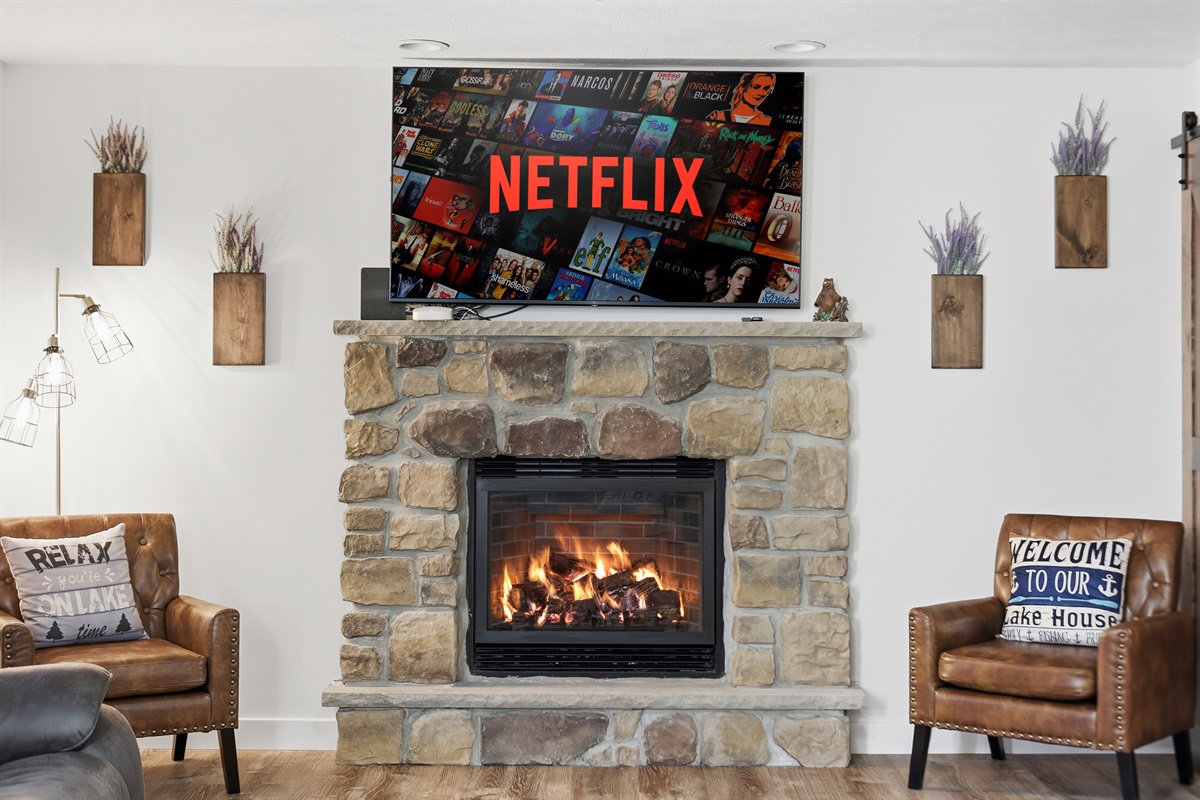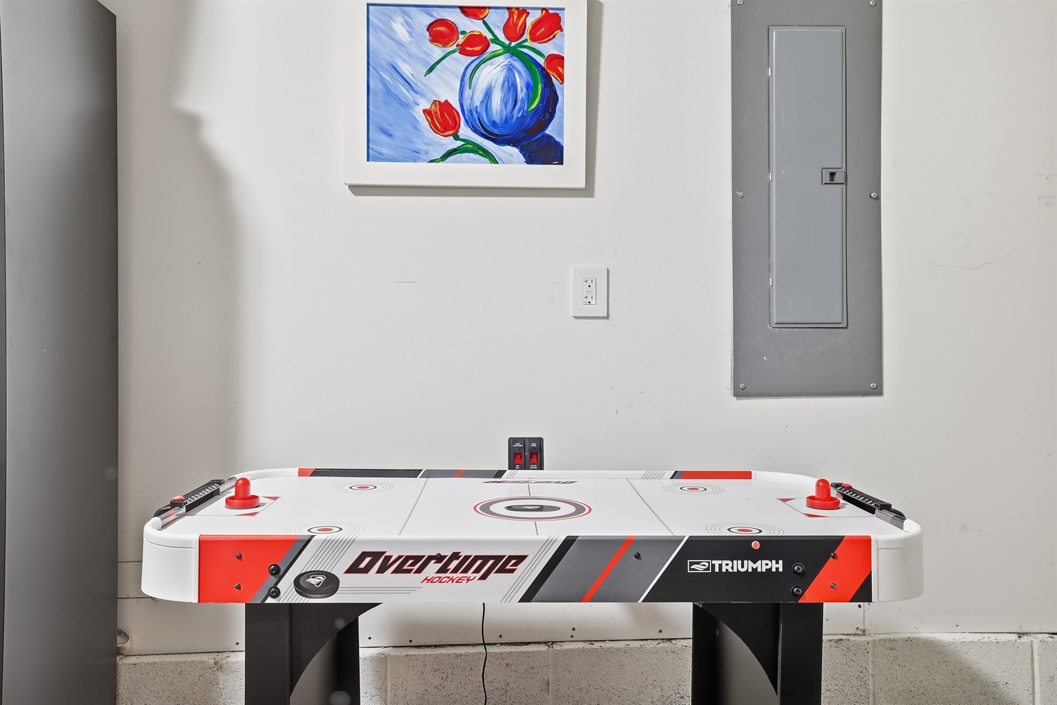 Step inside to a warm and inviting living area, complete with an indoor fireplace perfect for chilly evenings. Challenge your family to a friendly competition in the game area, which features a Foosball and Air Hockey. Stay connected or stream your favorite movies with fast Wi-Fi (up to 440 Mbps)