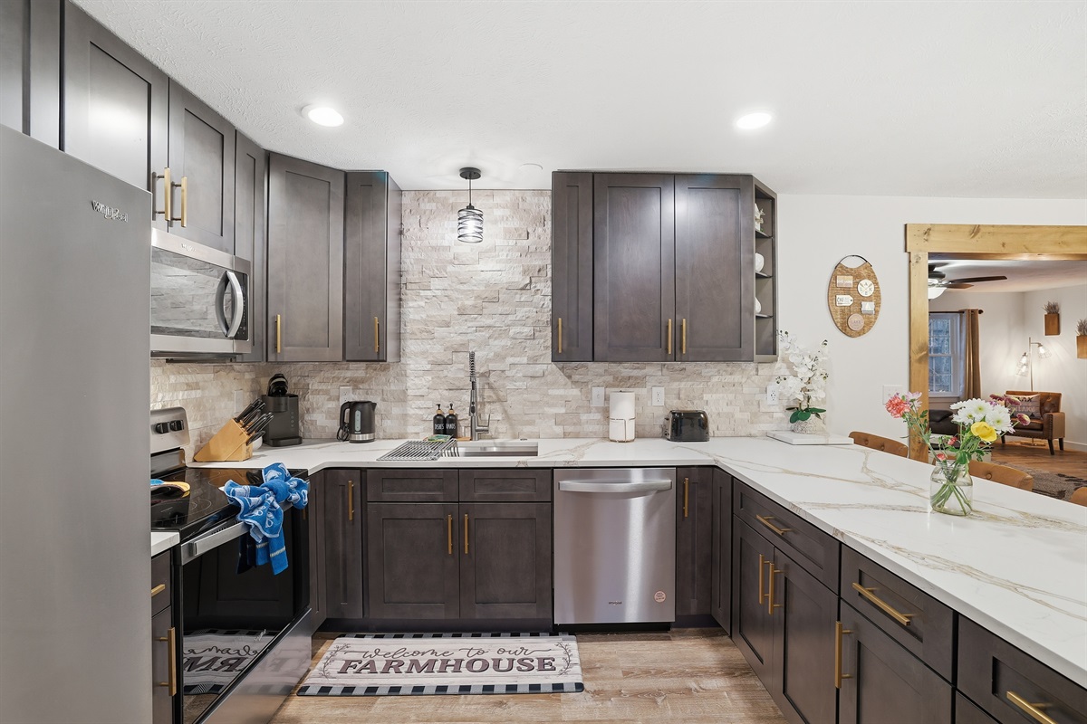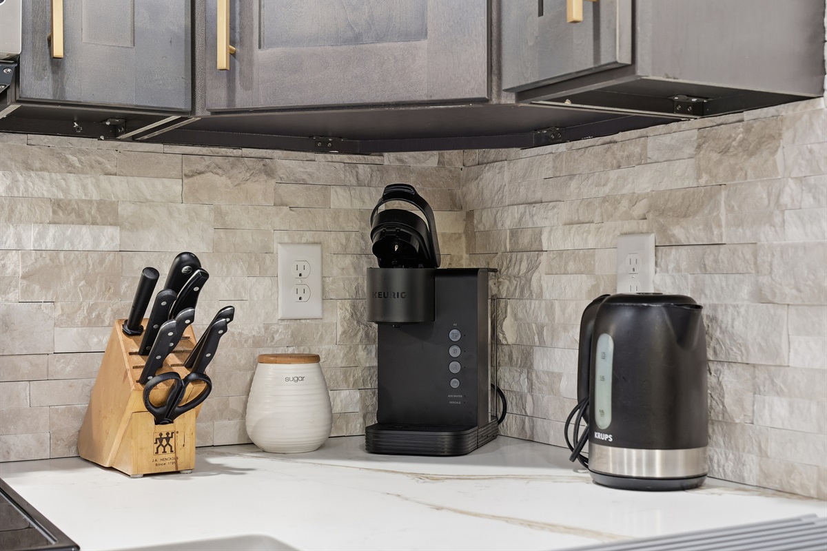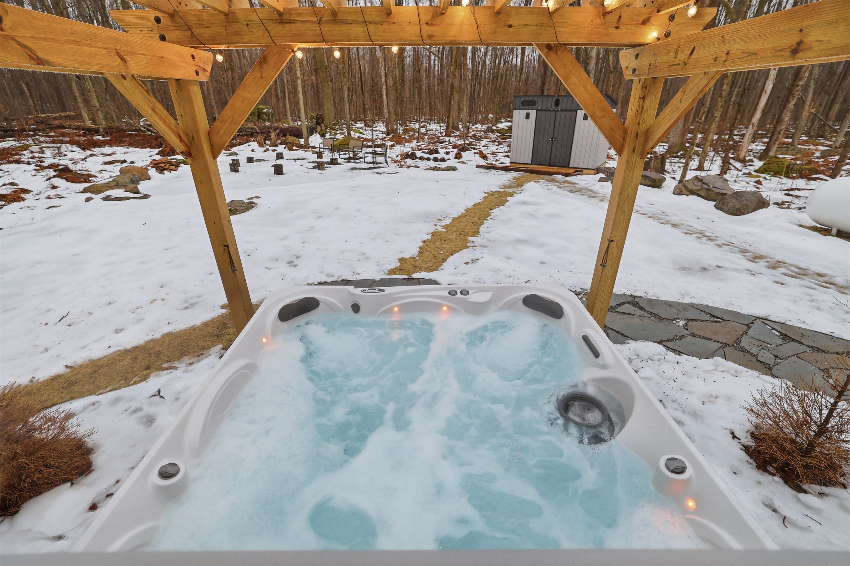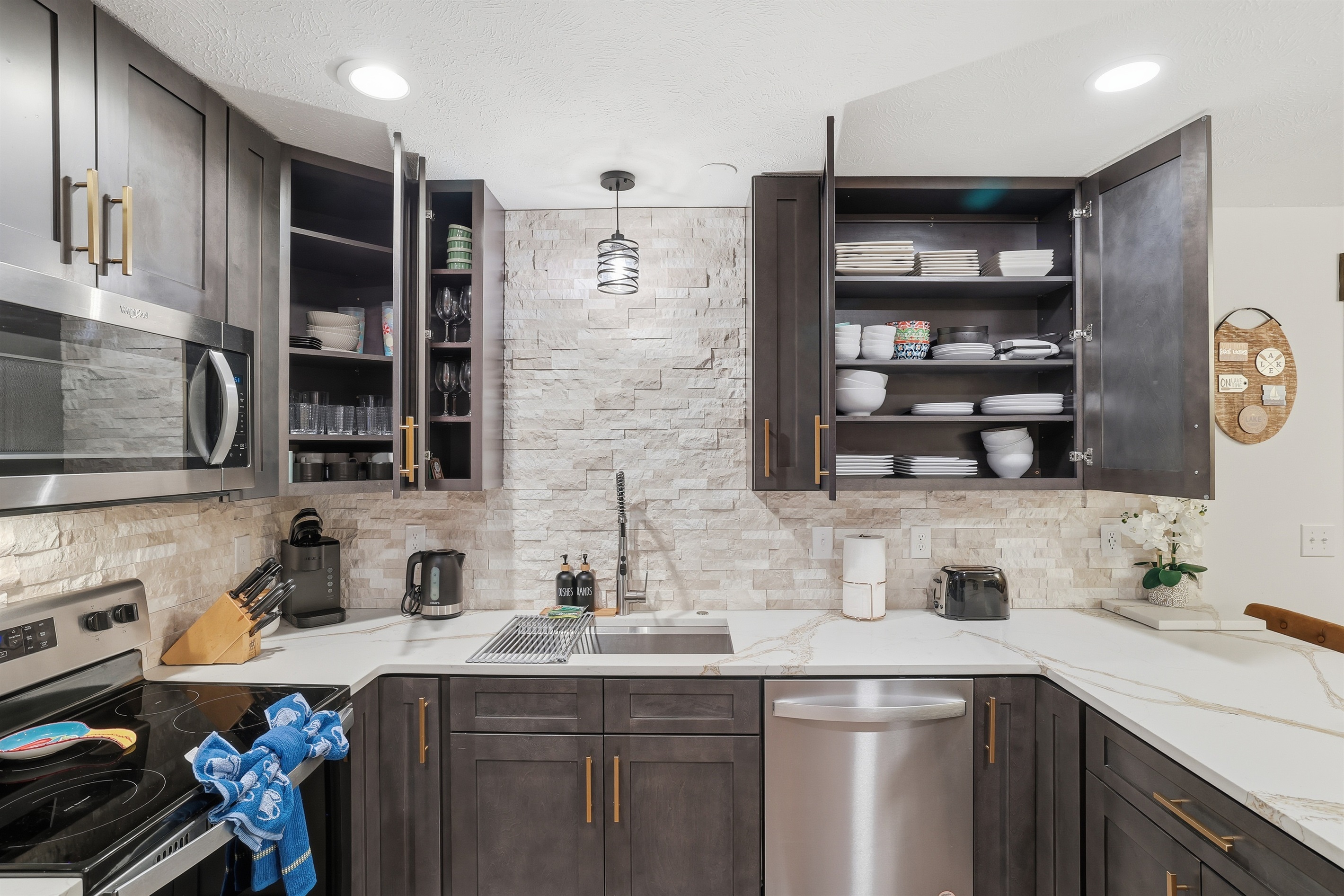 Your private outdoor oasis awaits. Unwind in the bubbling hot tub after a day of adventure, gather around the firepit to share stories under the stars, or simply relax on the spacious deck. When it's time to eat, the fully equipped kitchen has everything you need to prepare delicious meals.
