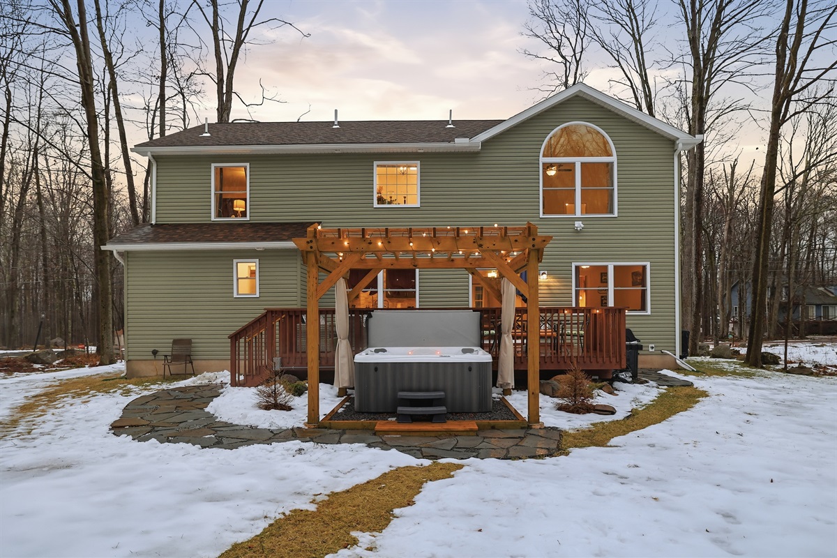 4 Bedrooms • 3 Bathrooms (2 full, 1 half) 3 Baths (2 full, 1 half) • Sleeps 1-10Modern, spacious home in the Arrowhead Lake community, designed for comfort and relaxation. Beautifully decorated with a clean, contemporary style and plenty of room for families or small groups. Enjoy bright living spaces and unwind in the private hot tub after a day at the lake or exploring the Poconos. Conveniently located near the community pool (seasonal) and other Arrowhead Lake amenities.